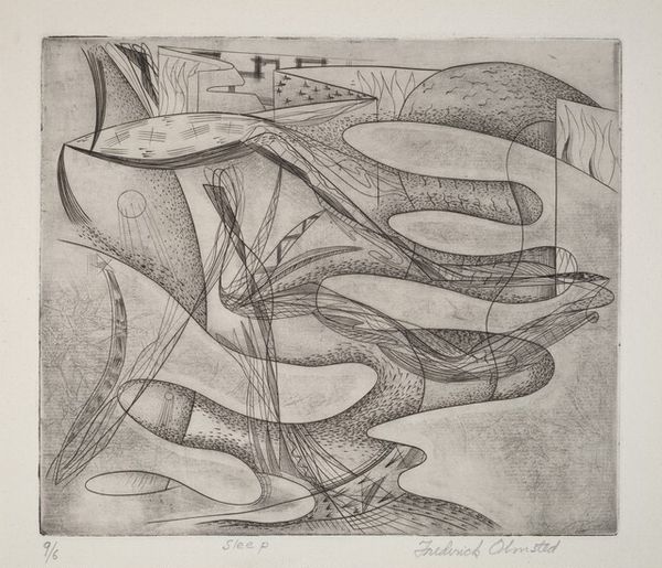 Editor: Here we have Yasuo Kuniyoshi’s "Pretzels," a graphite drawing created in 1927. It strikes me as an unusual still life, a kind of austere and almost unsettling depiction of everyday objects. What do you see in this piece? Curator: I see a potent intersection of immigrant experience and artistic modernism. Kuniyoshi, a Japanese immigrant to the US, often imbued his work with a sense of displacement and a questioning of belonging. Notice how the pretzels, grapes, and what appears to be a tin of some kind are rendered with such sharp focus against the vast landscape in the background? Editor: Yes, the contrast between the detailed foreground and the rather bleak, almost desolate landscape is striking. Curator: Precisely. This juxtaposition, rendered in such stark monochrome, evokes a sense of isolation. Kuniyoshi arrived in the US amidst rising anti-immigrant sentiment. This could be a commentary on the experience of being a foreigner, of the still life of trying to establish and nourish a new life while set against an often unwelcoming backdrop. Editor: That’s a fascinating interpretation! The objects themselves, then, might represent elements of American culture and sustenance within this experience? Curator: Exactly. Even the choice of pretzels – a traditionally German-American snack – might subtly hint at the complexities of cultural assimilation. How might his personal history play a role here? Editor: That completely reshapes how I see the drawing. Before, I just saw an odd still life. Now, I see a statement about cultural identity and the immigrant experience. Curator: And that's the power of art, isn't it? It invites us to look beyond the surface and consider the social, political, and personal forces that shape our world and our perceptions of it.