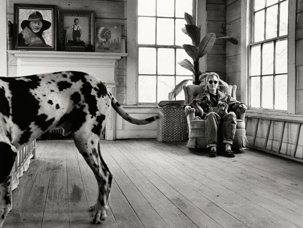 Curator: Up next, we have Andy Warhol's photographic work, "Dog," a gelatin-silver print. Its date is unknown, making it somewhat of an enigma in his larger body of work. Editor: Immediately striking is the stark realism, almost unsettling in its directness. The cropped composition focuses so intently on the dog's face, the piercing gaze seems to follow you. Curator: It’s compelling how Warhol applies his sensibility of portraiture here. Think of his iconic celebrity silkscreens and how he applied them commercially. Editor: In terms of symbolism, dogs are such fascinating animals in culture. Historically they signify loyalty, guardianship, and even the underworld, depending on who you're asking. Warhol distills those loaded references, reducing it to its basic essence. The gelatin-silver medium enhances this effect and creates an undeniable directness with its texture. Curator: Yet it's also interesting when we see him working within constraints, since he embraced them to shape his work. He deliberately used commercially available resources like silkscreen printing and instant Polaroids because of its popular appeal. Gelatin prints are very utilitarian, offering clarity of vision for everyday use in popular media. The work’s social dimension arises from photography’s popular accessibility, challenging traditional art spheres. Editor: I would argue that this simplicity contributes to the photograph's enduring power. By reducing the dog to a study, an essential form, the piece creates multiple entry points for us viewers to project emotions and concepts onto the portrait. I find the light in the gelatin to give this photograph an interesting mood with dramatic expression of depth in detail. Curator: Absolutely. Seeing Warhol experiment with the artistic status of photographs allows us to understand its dynamic role within popular culture. Editor: Reflecting on "Dog," it really speaks to the core appeal of archetypes in modern consciousness, like our connections with pets as beloved figures. Curator: Indeed. Seeing an artwork that makes us reconsider an artistic or cultural tradition brings insight into our perspectives and allows growth to be realized through knowledge.