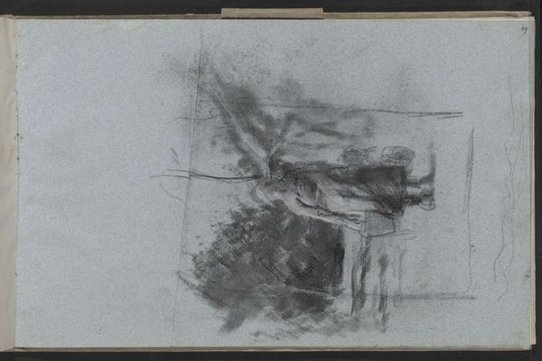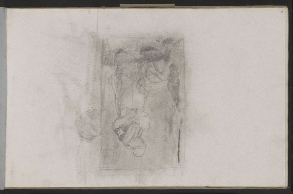Curator: This is "Interieur," a pencil drawing on paper by Albert Neuhuys, dating from 1854 to 1914 and currently residing here at the Rijksmuseum. Editor: It strikes me as a ghostly, half-formed idea of a space. There's a deliberate incompleteness that’s quite evocative. Curator: It does capture a moment of potential. In considering Neuhuys, it's important to acknowledge his connection to the Laren School, reflecting the harsh realities of peasant life and labor—realities that often went unacknowledged. Editor: The landscape elements also draw my eye. Note how the soft gradations of the pencil work create a layered depth, especially given the lack of defined lines. How might you interpret this approach formally? Curator: I see a connection between the domestic space, implied within the interior, and the external, more visible landscape tradition. Considering issues of domesticity and rural life, how might we relate them to the gendered division of labor and societal expectations of the time? Were there expectations tied to "woman’s work," like those captured by Millet? Editor: Perhaps that association taints my interpretation. Though seemingly unintentional, the tonal contrasts establish a dynamic balance within the composition itself. The semiotic play contributes meaningfully. Curator: These compositions are never devoid of a viewpoint. Considering its materiality - humble paper, and pencil - the social hierarchies of the time period are inescapable: who possessed the time to create versus toil endlessly. Editor: True, though those very tools facilitate the execution of visual language in its most pure state. A line, a tone, shadow... Curator: For me, beyond the composition's artistic success is how a work portrays social conditions. That shapes its impact across time. Editor: And, perhaps through attention to formal structures and visual language, a sensitivity toward the lived experience can emerge. Curator: Precisely. There is space for dialogue in appreciating this quiet moment from history. Editor: I concur entirely; there is something wonderfully fundamental here.
