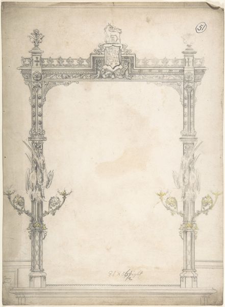 Curator: This watercolor and ink drawing, entitled "Design for an Alcove," was created by Giuseppe Valeriani between 1735 and 1745. Editor: Immediately, I see theatricality. It has the air of a stage set, rendered in these wonderfully muted colors, almost a dreamlike vision of opulence. Curator: The architectural structure, those precise columns and ornate detailing, certainly convey Baroque extravagance. It is almost as if the viewer is being presented with a scene ready for performance. Editor: Absolutely. The drapery itself suggests a secret about to be revealed, doesn't it? We are clearly dealing with a space of importance. Draped textiles were of enormous significance, suggesting luxury, status, power... Curator: Indeed. Note the repetition of the arched form throughout—the alcove itself, echoed by the curves of the decorative elements. See, too, how Valeriani utilizes a limited color palette to control the spatial composition? Editor: Yes, it all points to an enclosure, to somewhere separate. Perhaps, as a stage set, it's a place of transformation, or, as a domestic setting, a zone of private significance, somewhere reserved only for family, for retreat from outside gazes? Curator: Observe the classical busts flanking the draped opening; these, positioned like guardians, impart not only formality but allude to intellect, to the presence of thoughtful endeavor within. The architecture isn't merely a decoration but almost a framing device. Editor: I'm drawn to the way the sketch captures not only physical features, but offers a glimpse into the mentality of that period - a taste for theater and controlled perspectives within intimate, domestic arrangements. The alcove serves almost as a memory palace where emotion meets restraint. Curator: A compelling interpretation. This exercise in perspective captures both the grandeur and controlled intimacy of Baroque design. Editor: An apt visualization of spaces created for privileged vision. Thanks to the artist’s careful touch with the colors and his controlled hand, even a simple space exudes luxury.