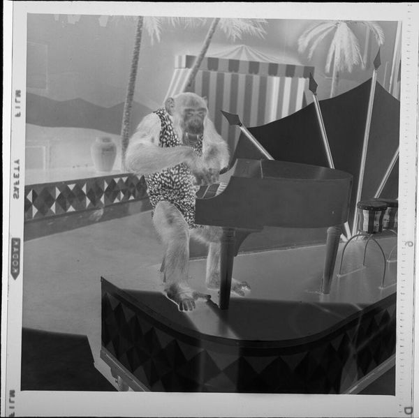 Curator: This is an untitled photograph by Lucian and Mary Brown, housed at the Harvard Art Museums. It depicts a little girl eating an ice cream cone. Editor: The composition is deceptively simple, almost snapshot-like, yet that inversion creates a dynamic tension. Curator: It certainly captures a specific moment, likely sometime in the mid-20th century given its aesthetic and cultural values. Editor: I see a strong emphasis on the diagonal lines—her arm, the table edge—which pull the eye through the frame, and the high contrast heightens the sense of drama in this everyday scene. Curator: The Browns were interested in family life and the roles of women and children at that time. This image could be read as a commentary on innocence or the pleasures of childhood. Editor: Perhaps. Or is it more about the formal qualities, the interplay of light and shadow transforming the mundane into something striking? Curator: Maybe it’s both; the Browns likely intended a work reflecting its period while also creating something visually compelling. Editor: Agreed; the image lingers in the mind, sparking a surprising amount of reflection on how we interpret such fleeting moments.