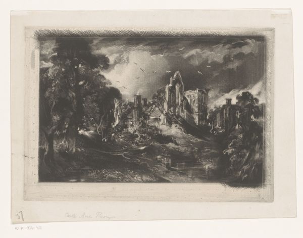 David Lucas masterfully created "Hadleigh Castle: Large Plate" using mezzotint, capturing not just a scene, but a vessel of collective memory. The ruined castle, bathed in the soft glow of decay, embodies the transience of human ambition. Ruins, like those in this image, appear throughout art history as symbolic markers of vanished glory, a visual memento mori. This motif echoes through time, from Roman depictions of fallen empires to the Romantic landscapes of Caspar David Friedrich. Note how the birds flying around the ruins contribute to this effect, contrasting natural and man-made elements. In their symbolism, birds oscillate between omens of ill and messengers of hope. The image engages us on a primal level. Subconsciously, we are drawn to these symbols of change and resilience. This is a story of cyclical renewal, reminding us that even in destruction, there is potential for rebirth and continuation.
