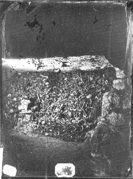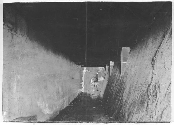 This is Felix Nadar's photograph, "Catacombes De Paris." With its somber tones and stark contrasts, the work explores the macabre beauty of the Parisian catacombs. Nadar frames a dense wall of human skulls, their stark whiteness contrasting against the dark, cavernous space. The composition is divided into a series of planes of light and shadow. This enhances the unsettling nature of the subject matter. The rough textures of the stone and bone are meticulously rendered, inviting contemplation on mortality and the passage of time. The use of photography as a medium becomes significant here. Nadar uses it to record a space where the boundaries between life and death, past and present, are blurred. These liminal spaces challenge fixed meanings, questioning the nature of being itself. The photograph serves not just as documentation, but as a philosophical inquiry.