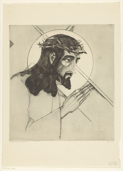 Lodewijk Schelfhout made this head of Christ as an etching in 1928, look at the way the ink has been used to construct different tones. The face is pale, almost absent, but the hair and beard are solid and dark; this is an art of contrasts. Look closely and you can see the expressive, nervous energy in the marks used to build up these features. There’s something almost comical in the way the beard and hair surround the stillness of the face. The crown of thorns looks more like some badly made basket, there is a kind of folk art sensibility at play here. I find myself thinking of Picasso’s drawings from the early 20th century, there's a similar reduction of form. Both artists allow us to see the subject anew. In this print, Schelfhout prompts us to meditate on suffering and transcendence. It is interesting to consider how the tools and techniques of printmaking allow artists to explore these themes of reproduction and meaning.