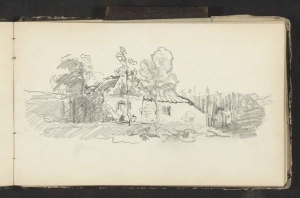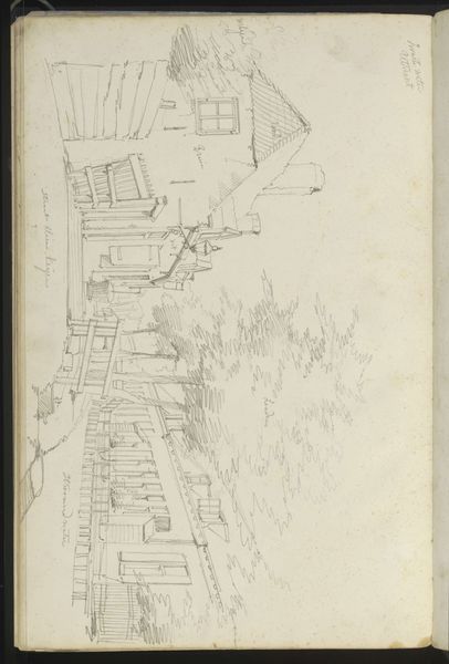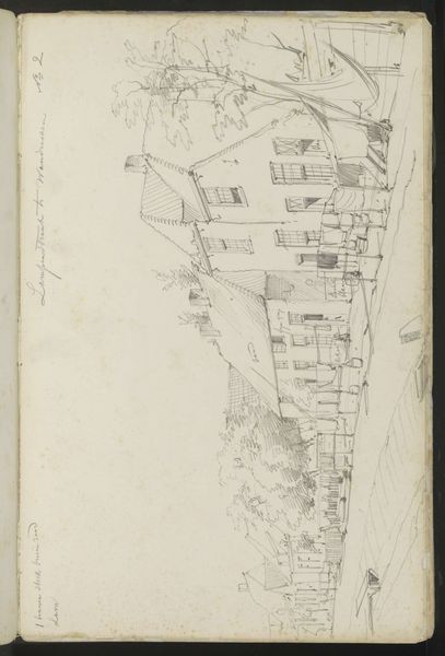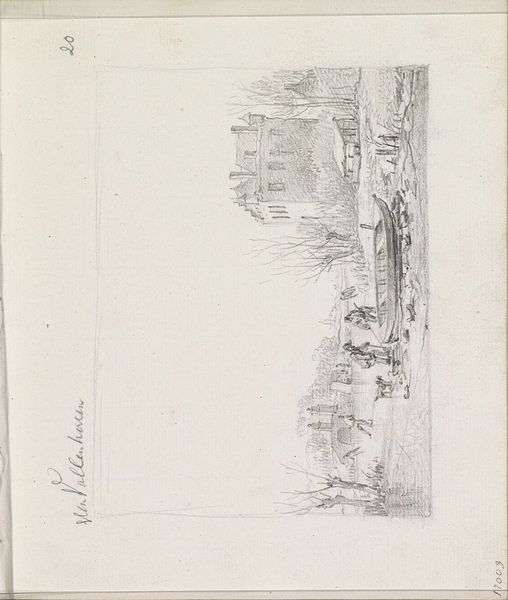 Curator: We are looking at "Emmerik aan de Rijn," a pencil drawing on paper crafted by Johannes Tavenraat between 1863 and 1866. Editor: It has a lightness to it, a gentle quietness. It feels like a memory, faint and delicate, or perhaps an idea just taking shape on the page. Curator: The cityscape depicted captures Emmerich on the Rhine. Consider that the Romantic movement was ebbing as this work was produced, while currents of Realism gained momentum. This piece almost seems caught in the transition. I wonder how that impacted its reception? Editor: The river, snaking through the composition, serves as a visual thread. Rivers often carry the symbolism of the passage of time, a continuous flow connecting different points in history and culture. Notice the almost ethereal treatment of the buildings, rendered with such spare strokes. Curator: The choice to represent the town in such a way may be understood in terms of class and the artistic milieu of the time. Given that Tavenraat focused predominantly on landscapes, could his rendering represent the erasure of social differences via focusing primarily on landscape? Editor: Interesting point. I also notice a distinct lack of human figures dominating the view, lending credence to that notion. Instead, it is nature and its imposing scale against the smaller buildings that grabs us here. Curator: This aligns, too, with Tavenraat's position in his cultural environment, where art became less concerned with portraying nobility and royalty. I also wonder if there were social disruptions or political undercurrents during this time that impacted him? Editor: Perhaps a retreat into nature offered solace, visually stripping away social conflicts from a fraught political reality and directing the viewer toward idealized themes. Looking closely, though, these swift strokes hold their own truth. Curator: True, seeing these elements as an expression of social shifts helps to amplify our experience. Editor: The quiet symbolic resonance lingers long after the initial glance. It provokes an unexpectedly thoughtful journey.