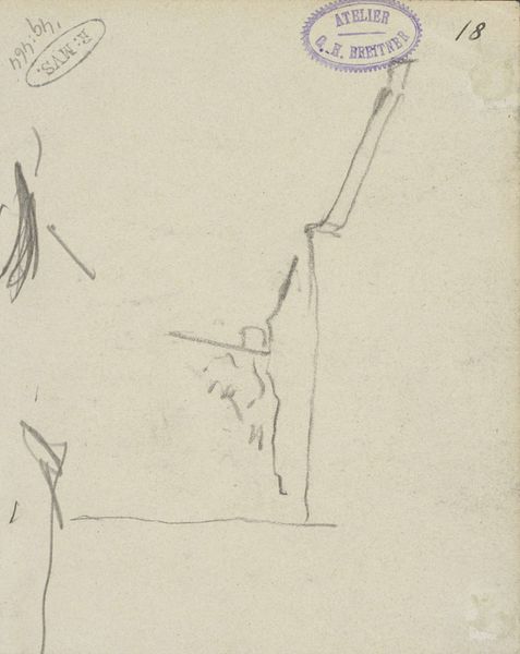 Curator: Well, hello there! Looking at this drawing, it feels rather...fragmentary. The quick strokes, the limited view... it has a peculiar energy. Editor: Indeed. We're observing "Achterste van een lopend paard", or "Hindquarters of a Running Horse," by Leo Gestel, thought to have been created sometime between 1891 and 1941. It is currently held here at the Rijksmuseum. The materials used were graphite and pencil on paper. I'm intrigued by the choice to depict only a section of the animal, especially its hindquarters, it focuses attention so acutely. Curator: It absolutely forces a reading. The horse, traditionally a symbol of power, nobility, even sexuality. But here, only the back end... It’s as though Gestel is deliberately truncating that symbolism, making it...almost comical, wouldn't you agree? The materials—the humble pencil and paper—speak to the ready availability, this was probably done on the move, a quick sketch capturing an immediate impression, and challenging high art boundaries. Editor: Comical, perhaps unintentionally so! I lean more toward an intimate moment, a glance capturing movement and musculature. Horses are central to transportation and agriculture and Gestel understands that connection deeply, stripping away layers of romanticism. His work frequently featured animals, but it always carried potent associations, almost archetypal in nature. There's a rawness to the medium as well. The pencil sketch allows Gestel to lay bare the horse, expose its animalistic presence and function within the economic context of the region and time. Curator: I find it difficult to move beyond the incomplete nature. I mean, we aren't seeing the head, and as a result the symbolism becomes so… open. Gestel clearly focused on the animal’s raw, muscular strength, reducing it to functional, elemental forms. The labor involved with sketching quickly is present and part of the artistic process; how Gestel rapidly and concisely communicates the subject is part of its appeal and process-oriented. It makes me consider how his work connects with larger questions about animal labor. Editor: It’s a fascinating distillation, and by focusing on only part of the whole Gestel invites contemplation, not just about the horse itself, but also the nature of its purpose in relation to its surroundings. We've had a rather good look ourselves, haven't we? Curator: I agree; by exploring both its materials and subject matter, its role in challenging conventions and engaging with broader themes, we see that there is a certain profoundness.