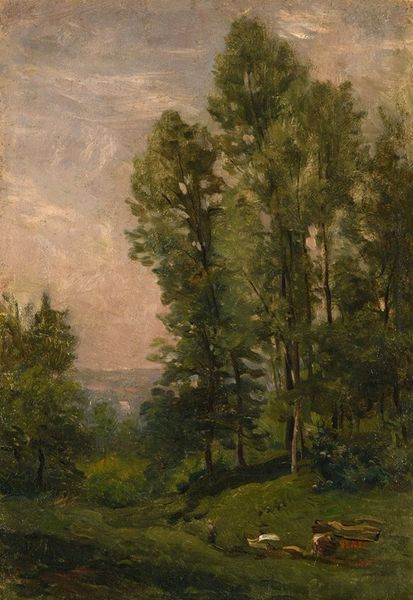 Curator: Before us, we have "Snowfields, Evening" by J.E.H. MacDonald, a watercolor painting utilizing mixed media techniques. The artist, a pivotal figure in the Group of Seven, has captured a very evocative landscape here. Editor: Evocative indeed! My first impression is one of solitude. That solitary tree on the horizon set against the dusky sky creates a very palpable feeling of stillness and perhaps even melancholy. Curator: Yes, I see what you mean. Formally speaking, the composition is divided horizontally, giving significant weight to the atmospheric sky, which is rendered with visible, almost turbulent brushstrokes. Note how MacDonald employs underpainting and watercolor bleed techniques, enriching the textural depth. Editor: I'm drawn to the repeated motif of the tree. Across many cultures, the tree stands as a symbol of life, growth, and connection to both earth and sky. But this solitary tree, bereft of leaves, feels like a powerful memento mori against that fading light. Curator: A fascinating observation! Notice the nuanced color palette: various shades of blue dominating, with hints of yellow peeking through. MacDonald's restrained color choices contribute to the work's somber tone while the roughness of the brushstrokes gives a sense of dynamism. It’s as if the landscape itself is breathing. Editor: The starkness also makes me consider the symbolic meaning of snow, which often represents purity, but also isolation and the dormancy of winter. Perhaps MacDonald is contemplating a transient moment, a meditation on life, death, and the cyclical nature of time. Curator: Your insights are illuminating. I hadn't quite considered the cyclical aspect so explicitly. This painting, from a purely structural standpoint, also shows MacDonald’s interest in contrasting broad areas of color with more detailed textural work, to create visual interest, something he clearly developed more completely later. Editor: Yes, it is quite compelling how a seemingly simple landscape can provoke such deep reflections. Thank you for guiding me through this encounter! Curator: My pleasure! It's in exploring these complexities, the technical and symbolic, that we can fully appreciate MacDonald's vision.