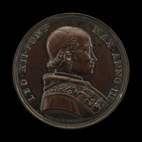 Curator: So stoic! All formal posture and repressed feelings. What am I looking at? Editor: This is a marriage medal, dating back to 1767. The piece, by Gysbert van Moelingen, commemorates the union of Wilhelm V, Prince of Orange, and Frederica Sophia Wilhelmina, Princess of Prussia. Curator: Orange and Prussia, eh? Talk about power plays! This isn’t exactly Cupid’s arrow we’re seeing here, more like…an ironclad handshake between nations? The profiles are beautiful but… distant. Editor: Exactly. The medal, fashioned from metal relief, served as a public declaration, a dissemination of power through imagery. Marriage, especially among royalty, was always a strategic act. This medal served to propagate that act to their constituencies. Curator: It is all political and a bit tragic if you ask me. Do you think she even liked him? They barely seem to be glancing at each other! She looks like she tolerates him, not loves him. Is that wildly off? Editor: Perhaps. Although, these were people raised for duty, and political stability relied on alliances like these. This wasn't about individual sentiment as much as about dynastic legacy and securing futures. Curator: True. Still, I keep picturing the artist there, painstakingly rendering each curl of hair, each fold of fabric, probably rolling their eyes thinking, "Here's another stiff portrait for the ages." But hey, at least they got paid. I can relate. Editor: You see the hand of an artist negotiating both technical demands and a potent, albeit prescriptive, symbolic order. Van Moelingen successfully rendered the weight of political expectations, and he secured a legacy too, since his name is immortalized at the bottom edge. Curator: The faces…almost identical in their rigid composure. Though I have to say, that's incredible work in metal. Imagine holding their whole future in your hand… or on a commemorative coin! Editor: Absolutely. It speaks volumes, doesn't it? It shows the importance attributed to these events, these unions. Curator: This marriage, stamped into metal, meant something to people way back then. What did they feel? Did they hold on to this, thinking the marriage, their future depended on this symbol. Food for thought, if you are ever feeling existential. Editor: Indeed. And looking at it today provokes more than one feeling; something sad, something impressive, something political and very human too.