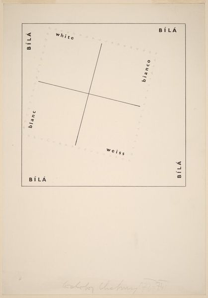 Editor: This is "The Location of a Triangle" by Sol LeWitt. It looks like a diagram, maybe even a code. What symbols or deeper meanings do you see? Curator: The triangle, a potent symbol across cultures, often represents stability, divinity, or even conflict. LeWitt's clinical approach strips away overt emotion, but the underlying geometry resonates with ancient notions of order. Do you feel a connection to any particular tradition looking at this? Editor: I hadn't thought about it that way, but now I see how something so seemingly simple can connect to broader ideas. Thank you. Curator: Indeed, it prompts us to look beyond the immediate and contemplate the echoes of symbols across time.