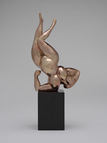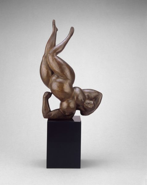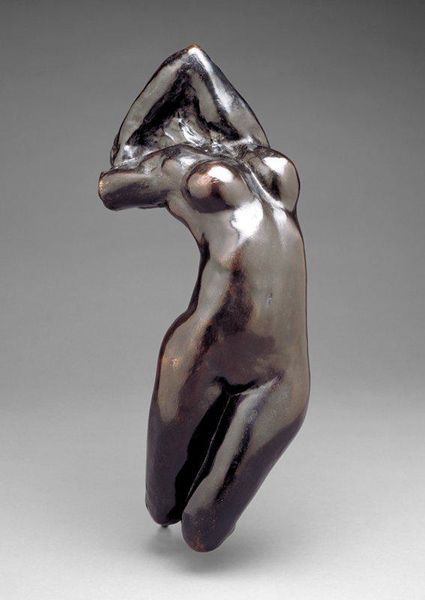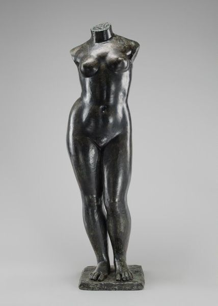Curator: Lachaise's "Female Torso," residing here at the Harvard Art Museums, really hits you, doesn't it? Editor: Absolutely. It's so... elemental. Almost a primal form, emerging, or maybe sinking. Curator: Lachaise, born in 1882, had a lifelong muse in his wife, Isabel, and many see this as a celebration of the female form, liberated from traditional constraints. Editor: It's interesting how the curves almost defy gravity, yet there's such a sense of groundedness too. It feels very Venus of Willendorf, this kind of female archetype of abundance and power. Curator: Perhaps power in acceptance? It's a reclamation of the body, maybe a conversation with those older ideals. Editor: I like that—a vital conversation. The bronze practically glows from within, making a statement of sheer life. Curator: Yes, something eternal about it, a fragment whispering stories from epochs.