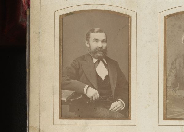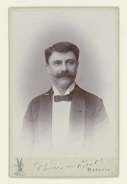 Curator: Looking at this image, I immediately sense a quiet reserve. It’s quite striking how the monochrome palette and soft focus create such a dignified and timeless aura. Editor: Indeed. We’re looking at a piece titled "Portret van een onbekende man", attributed to E. Marchandise and estimated to have been created sometime between 1891 and 1910. As a photographic portrait from the late 19th century, it presents an opportunity to reflect on identity, class, and the visual conventions of that era. I wonder who this man was, what role did the photographic studio play in shaping social perceptions and reinforcing bourgeois identity through carefully curated images. Curator: Well, observe the way light models the planes of his face, how the sepia tones imbue everything with warmth and depth. The gentleman’s carefully styled hair and trimmed beard point to meticulousness; a subtle detail. Note also how his suit is carefully tailored; altogether it provides this visual richness. It transcends the immediate goal of being a "portrait". Editor: It is definitely striking, but I am critical of the rigid performativity that went into its production and circulation as cultural capital. The bourgeois were so careful about self-presentation. We are meant to focus on an air of respectability; the image strategically obscures class divides that this very person actively contributed to reinforcing at the time. We can consider Roland Barthes here. The “studium” is clearly communicated to viewers but to what end, really? Curator: I understand your reading, but perhaps we could also consider it as a document of its time. It captures an aesthetic preference for soft, flattering light and a certain level of formality, offering us insights into the artistic ideals of the period. Editor: Undoubtedly so, and thinking about its function as a carte-de-visite makes one consider how these images acted as vectors of identity, gender, and social status across the late 19th-century. What type of interpersonal relations were facilitated or shut down? Curator: Regardless, analyzing the photograph’s tonality and its delicate contrasts is valuable from an aesthetic perspective, highlighting how a singular medium can be imbued with distinct emotions, whether through a contemporary or present-day lens. Editor: Absolutely. Deconstructing this portrait unveils how constructed identity always intersects with visual regimes of power that are continuously renegotiated to our own present day.
