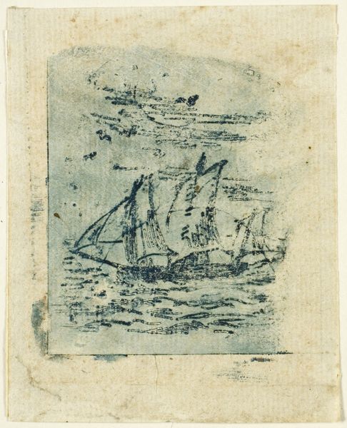 Curator: Before us is Jean-François Millet's etching, "A Vessel Under Sail," created around 1847. It's a study in ink on paper, currently residing at The Art Institute of Chicago. Editor: My immediate impression is one of contained restlessness, a sketch vibrating with captured, frenetic energy. The tonal range, however muted, pulls the eye directly to the scene. Curator: Note how Millet employs hatching and cross-hatching to establish depth and volume, lending shape to both the turbulent waters and the sails catching the wind. The contrast between light and shadow is particularly striking in rendering the hull. It’s an object lesson in maximizing expression through minimal means. Editor: But expression for what purpose, exactly? The mid-19th century was a period of vast transformation fueled by imperial projects, and this ship feels less like a romantic subject than an agent in global flows of people, capital, and goods extracted and exploited by colonial regimes. Do you feel the artist shares this perspective, or perhaps the patron commissioning the image? Curator: Whether Millet consciously intended a critique or celebration of these "flows" is less evident to me than the way he constructs an aesthetic problem and works towards its solution within a limited frame. He has created a pleasing tension between the stability of the central form—the ship—and the instability suggested by the sketched and scribbled elements of wind, water and weather. Editor: The visual structure of the work cannot be divorced from its historical circumstances. Considering this piece alongside contemporaneous accounts of maritime activity in France reveals the socio-economic stratification implicit in Millet's rendering. It cannot be considered divorced from French involvement in things like the trans-Atlantic slave trade. Curator: Your argument compels attention, yet it also underscores the beauty inherent in the print's delicate linework, how those marks alone create this compelling interplay of stability and dynamism. I keep thinking of the precision with which each line helps define the ship's interaction with its environment. Editor: Precisely; its relationship with a human-imposed structure of ownership and exchange. Hopefully considering those forces, not just its immediate context or composition, deepens the viewers engagement with the work. Curator: Indeed. Such dual perspectives greatly enhance our perception. Editor: An insightful exchange; art benefits from this discourse of approaches.