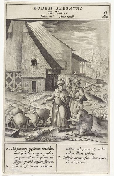This engraving of The Prodigal Son as a Swineherd was made by Dominicus Custos around the turn of the 17th century. Custos was a skilled printmaker, working with the traditional technique of engraving - cutting lines into a metal plate, inking it, and then using tremendous pressure to transfer the image to paper. Look closely and you can see how the varying densities of lines create a whole range of tone and texture. These tonal modulations result from the hand of the engraver and are a testimony to the labor involved in producing an image in this way. The subject matter of the prodigal son is relevant here as well. As the son’s story goes, he wasted his inheritance, and ended up doing one of the lowliest jobs imaginable: tending pigs. The engraving brings this biblical tale into the world of early capitalism, where labor and its rewards were very much on people's minds. The value isn't only in the final print, but also in the skilled work required to make it.