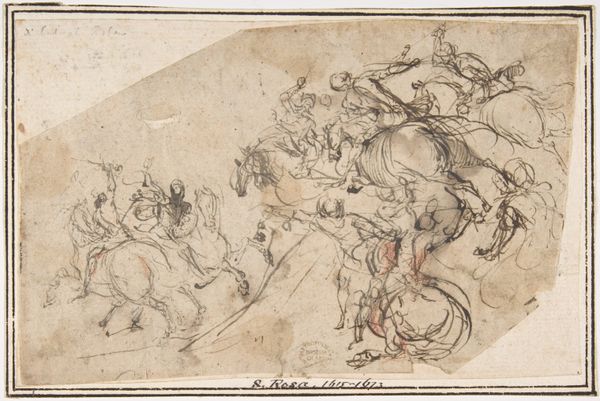 Francesco Allegrini’s pen and brown ink drawing captures a dynamic boar hunt, a subject laden with symbolism. The boar, historically a symbol of untamed aggression, is pursued by hunters on horseback, representing civilization's attempt to control nature's chaotic forces. The hunt itself is a recurring motif. Think of the ancient Greek myth of the Calydonian Boar, where heroes united to slay a monstrous beast, mirroring humanity’s struggle against primal instincts. This motif resurfaces in medieval tapestries, aristocratic hunts, and even modern cinema, each reflecting the cultural anxieties of their time. Note how the emotional intensity of the hunt, the adrenaline, and the thrill of the chase engage viewers on a subconscious level, tapping into primal instincts. As we reflect upon this image, we perceive the hunt not merely as a depiction of sport but as an exploration of humanity's complex relationship with nature and its own inner drives, a theme endlessly replayed through the theater of time.