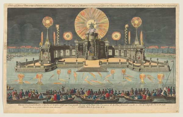 This anonymous print depicts fireworks over a triumphal arch dedicated to Joseph II, Holy Roman Emperor. Above the arch, we see the double-headed eagle, a symbol of imperial power since the Holy Roman Empire. The eagle, of course, has flown through history since ancient times, appearing as a symbol of strength in Mesopotamian art and later adopted by the Roman Empire. The two-headed version here evokes the Byzantine Empire. In many cultures, the eagle is associated with the sun and sky gods; it is not merely a symbol of authority but also of divine right. Observe how the fireworks bursting forth evoke the same sense of awe and wonder, mimicking the power once attributed to celestial deities. This display appeals to our primal fascination with light and spectacle. The image becomes a psychological canvas where power and spectacle merge, inviting us to consider how symbols evolve and persist, echoing through time.