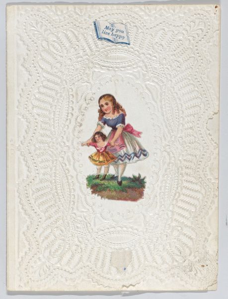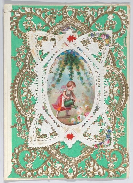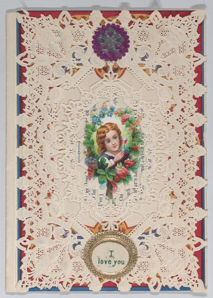 This small valentine, whose maker is now unknown, is made from paper lace and collage. It is an artifact of the nineteenth-century sentimental culture that surrounded the rise of mass media. The development of lithography and cheaper paper made sentimental tokens like these accessible to a wider public, standardizing the visual vocabulary of love, friendship, and mourning. The card features conventional visual codes: a central image of a woman, flowers, and a cupid figure, signifying love and beauty. Examining the institutional history of the period helps us understand the social function of the valentine. In an era defined by rigid social structures and courtship rituals, these cards offered a sanctioned means of expressing feelings, reinforcing existing social norms around gender and affection. To better understand this valentine, we might consult etiquette books or conduct archival research into the popular imagery and printing practices of the time. The meaning of this object is not inherent but is contingent on its original social and institutional context.