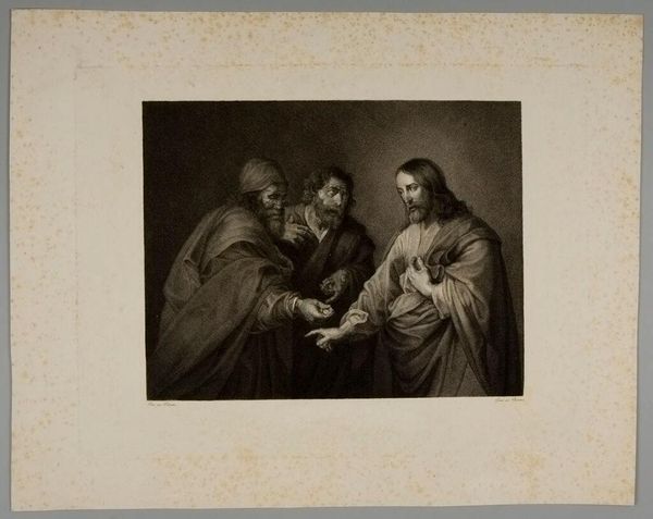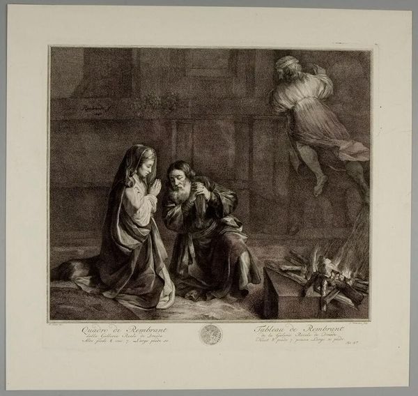 Editor: This is "Christ Taken by the Jews" by Pietro Ghigi. It depicts Christ's arrest, a heavy scene. What narratives do you find embedded within this composition? Curator: It's crucial to consider how the portrayal of "Jews" in this piece reflects the historical context of antisemitism. How does the artist's depiction contribute to or challenge prevailing stereotypes and power dynamics? Is this reinforcing harmful narratives? Editor: So, the focus isn't just on the biblical scene, but how it perpetuates certain prejudices. Curator: Precisely. Art doesn't exist in a vacuum. Examining it through a lens of social justice helps us understand its potential impact on identity and race. Editor: It's eye-opening to consider the social impact, not just the artistic skill. Curator: Indeed. We must ask whose story is being told and at whose expense.