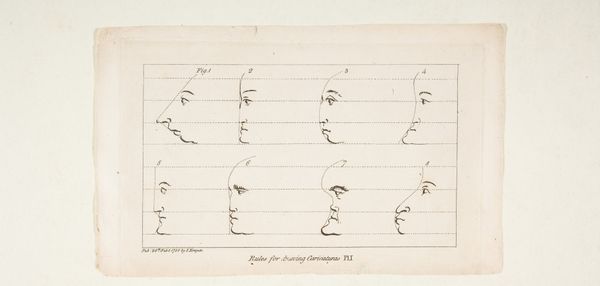Editor: This is *Vierentwintig koppen van mannen*, or *Twenty-Four Heads of Men*, a graphite and engraving print by Daniel Nikolaus Chodowiecki, created in 1774. The delicate lines give it a very classical feel. I’m struck by how uniform yet individual each face is. How do you interpret this work, given the social and historical context of the late 18th century? Curator: This piece resonates deeply when we consider the Enlightenment ideals that were taking hold. Chodowiecki, working in a period defined by reason and observation, presents us with what seems like a study in physiognomy. Are these ‘types’ reflective of societal roles and power dynamics, reinforcing class structures through visual representation? The numbered heads encourage us to categorise, to analyse—but on what basis? Editor: That's fascinating! So you’re suggesting it’s not just a neutral observation, but a commentary on how society classifies people? Curator: Exactly. The neoclassical style, with its emphasis on order and rationality, here intersects with potentially problematic social theories. Where do you think these presumed archetypes draw their authority? Editor: Perhaps from the existing social hierarchy. The piece subtly reinforces who holds power just by depicting them in a certain light? Curator: Precisely. And we need to question whose gaze is doing the depicting. Whose 'reason' are we seeing reflected? How might the identities of the subjects – their race, class, and social standing – play into how we view this grid of faces today? Editor: This really changes how I see the piece. I'll definitely be thinking about power structures when I look at art from this period. Curator: And about whose stories aren't being told, whose faces are missing from this very selective representation of the populace.