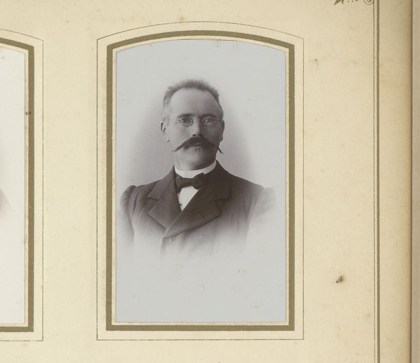 Editor: This is a photograph titled "Portret van een man met snor," created sometime between 1860 and 1900 by the Gebroeders Sanders. It's a beautifully faded image – almost sepia-toned. He looks so serious, so contained. What do you see when you look at this portrait? Curator: I see a story etched in stillness. The slight unevenness of his collar, the determined set of his jaw… it’s a portal to another time. I can almost hear the ticking clock in the photographer’s studio. Do you ever wonder what he was thinking? The formality of 19th-century portraiture often masks a whole inner world. Editor: Absolutely! He looks almost… uncomfortable? I mean, that moustache is amazing, but is he happy with it? Curator: Ah, the moustache! It’s a statement, isn’t it? A deliberate choice. In those days, facial hair was practically a semaphore. This particular style suggests a man who is both grounded and perhaps… just a little bit mischievous. I see an earnestness about him, almost pleading from behind those carefully chosen details. Is this someone trying very hard to adhere to social mores while also screaming on the inside? Editor: I hadn’t thought about it that way! The moustache as a carefully curated facade! It makes you wonder what parts of himself he’s choosing to show… or hide. Curator: Precisely! It's like a riddle wrapped in a buttoned-up jacket. Maybe that’s why I keep coming back to these old photographs – it's the stories between the lines. I think art in the end always does this for us. What is hiding? Why? And do we have the courage to go digging for the truth? Editor: I will definitely never look at a moustache the same way. Thank you.