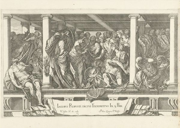 This engraving of Saint Cecilia at the Organ was made by Zacharias Dolendo around 1600 in the Netherlands. The image depicts Saint Cecilia, the patron saint of music, playing an organ surrounded by angels singing from sheet music. The engraving creates meaning through its visual codes, cultural references, and historical associations. The inclusion of musical notation and instruments reflects the cultural importance of music in the Netherlands at the time. The angelic figures refer to Christian religious themes. The fashion and architecture in the image create a sense of grandeur and luxury, reflecting the wealth and power of the Dutch Republic during its Golden Age. We can see references to the relationship between religious institutions and artistic patronage. The artwork invites us to consider the role of art in shaping our understanding of the world. To understand it better, we might research the history of music in the Netherlands, the role of religion in Dutch society, and the patronage of the arts by wealthy individuals and institutions. Art is contingent on its social and institutional context.