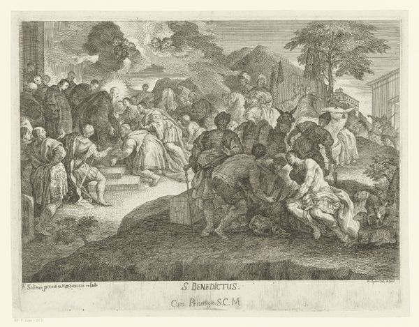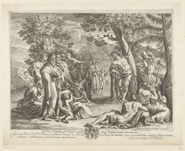 This print, made by Gilles Rousselet, depicts the moment Moses is found by the Pharaoh's daughter. Observe how the artist anchors the scene with the allegorical figure of the river Nile, accompanied by a sphinx. This motif of the river god can be traced back to ancient Greece and Rome, embodying the life-giving and destructive forces of nature. We see this archetype echoed throughout history, whether in the form of sculptures adorning fountains or personifications in Renaissance paintings. The sphinx too, a hybrid creature of human intellect and animal strength, transcends time and cultures. Consider how these symbols, deeply embedded in our collective memory, elicit a powerful subconscious response. The image evokes an emotional blend of hope, fear, and the precariousness of life. These archetypes endure, resurfacing in art across millennia, continually shaping our understanding of ourselves and the world around us.