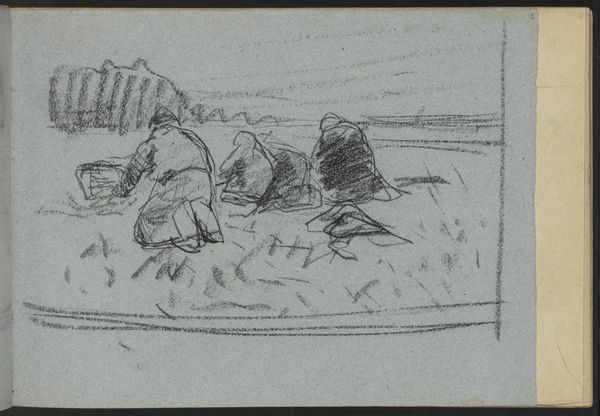 Anton Mauve created "Houthakkers die een neergehaalde boomstam in stukken hakken," or "Woodcutters chopping up a fallen tree trunk" as a sketch. Mauve was a leading figure in the Hague School, a group of Dutch realist painters in the 19th century, who, in the wake of urbanization, focused on rural landscapes and peasant life. This sketch captures two figures engaged in manual labor, a scene that reflects the period’s changing relationship with the land and the working class. There's a certain dignity and respect in how Mauve portrays the woodcutters. Instead of idealizing rural life, he presents it with a quiet realism. The simple medium of the sketch mirrors the straightforwardness of the woodcutter's task. Mauve’s work draws attention to the value and the often-overlooked contributions of the working class, reminding us to consider the human element embedded in the transformation of our environment.