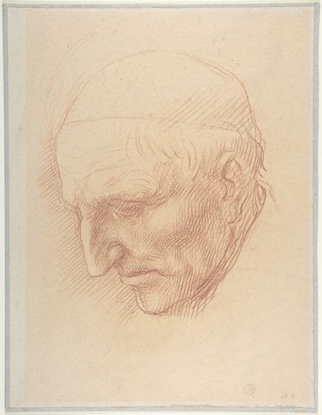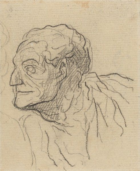 Editor: This is Victor Müller's drawing, "Kopf des sterbenden Revolutionärs G. im Gespräch mit Bischof Bienvenue Myriel, der dessen Segen erbittet," made after 1862. It looks like it was created using charcoal, chalk, and pencil on paper. I’m struck by the strong lines and the somewhat somber, reflective mood. What do you see in this piece, especially given your perspective? Curator: I’m drawn to the very means of production here. Look at the paper – its materiality. The tooth of it grabs the chalk and charcoal, doesn't it? Consider then, the economic context. Paper production was becoming more industrialized after 1862. What grade of paper is this? Was this readily available to Müller, or was it a luxury that shaped the accessibility, and perhaps even the reception, of his work? This all connects to the labour of creation – both Müller’s skilled hand and the anonymous workers involved in producing the materials. Editor: That's a very interesting point! I hadn't considered the economics of art materials. Curator: Furthermore, note how Müller chose to represent the subject matter using these materials. Why drawing rather than oil paint? Does the perceived accessibility of drawing – a medium reliant on paper and readily available implements – impact how Müller conceptualizes his subjects, particularly given the inherent sociopolitical tension in the revolutionary seeking religious solace. Consider also the distribution of images; printed reproductions of drawings often circulated wider than paintings. What kind of audience was Muller trying to reach? Editor: So, it's not just about the figures in the drawing but about the materials themselves and the society that produced them? Curator: Precisely! The material history embeds this work in a web of production, labor, and social context. What this work *is* is entirely linked to how it was made and distributed. Editor: This has definitely opened my eyes to a completely different way of interpreting art. I am excited to apply the materialist perspective when considering how artists may attempt to affect the world and specific communities through art. Curator: And understanding how the means of creating influence its impact is crucial.