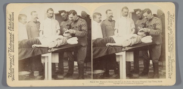 This stereoscopic image shows a ward with wounded soldiers near the Orange River in South Africa and was made around 1900 by an anonymous photographer. The image offers a troubling view into the realities of the Second Boer War, a conflict emblematic of British colonial ambitions clashing with the independence movements of the Afrikaner population. At first glance, the nurses, in their starched white uniforms, evoke a sense of order and care amidst the chaos of war. Yet, this very order underscores the stark gender roles of the time, with women relegated to caregiving positions while men occupy the battlefield. The photograph also serves as a stark reminder of the human cost of imperialism, bearing witness to the bodies scarred by a war waged over land and resources. Here, the personal and political collide, inviting us to reflect on the complex interplay between identity, nation, and the far-reaching consequences of conflict.