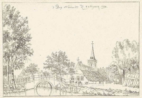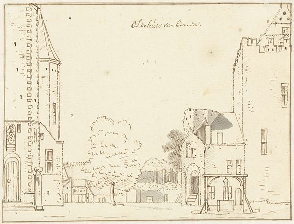 Editor: Here we have "De Hoenderpoort te Nijmegen," a pen and ink drawing, possibly from 1752-1756, by Jan de Beijer. It feels like a snapshot of a quiet, everyday scene, but the buildings seem quite imposing. How do you interpret this work? Curator: This seemingly simple cityscape opens a window into the socio-political landscape of the Dutch Golden Age. Consider the Hoenderpoort itself – a city gate. Gates are not just about physical access; they are about control, surveillance, and the regulation of movement. Who was allowed in, and who was kept out? Editor: That’s interesting! I hadn't thought about the gate in terms of power dynamics. Curator: De Beijer gives us realism, but it is selective realism. Are there marginalized communities represented here? Who *isn't* depicted in this idyllic scene, and why? Think about whose stories aren't being told, and how the composition might subtly reinforce existing hierarchies. What kind of people occupied the nice houses versus lived beyond the city walls? Editor: So, even in what seems like a straightforward landscape, there's an undercurrent of social commentary. Curator: Precisely. And remember, art is never neutral. It either challenges or reinforces existing power structures. De Beijer's work invites us to question whose perspective we're seeing, and what that perspective obscures. Editor: I see the drawing with new eyes now, more aware of its potential to reveal societal structures. Thanks. Curator: Indeed, art is an access point for us to rewrite the cultural narrative.