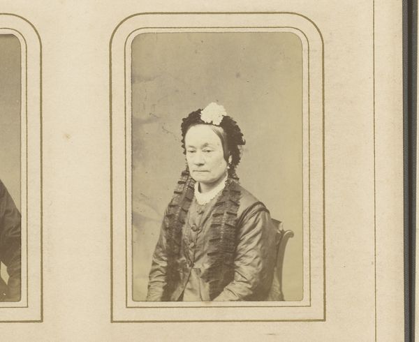 Editor: Here we have a photograph, “Portret van een onbekende Japanse vrouw,” taken sometime between 1890 and 1920 by S Hachiya. There's something serene yet formal about it; the subject looks directly at the camera. What do you see in this piece? Curator: I see a fascinating intersection of tradition and modernity, and a silent commentary on the role of women in Japanese society at the turn of the century. This photograph isn’t simply a portrait; it's a staged presentation, a negotiation of identity in a rapidly changing world. The woman is in traditional dress but being photographed – what does it mean to participate in this modern medium while embodying tradition? Editor: That's a great point! So, it is a cultural adaptation, perhaps? The integration of photography is in itself transformative. Curator: Exactly. The very act of commissioning such a portrait – or even agreeing to be photographed – suggests a level of agency, even resistance, against more patriarchal norms that traditionally confine women to the domestic sphere. It makes me think about visibility: who gets to be seen, and how? The woman's gaze is direct and unwavering, a claim to visibility and perhaps power. Editor: It's intriguing how this photograph becomes more complex the more we look at it, she's not just passively sitting, waiting to be seen. Curator: Precisely. And the photographic medium itself raises questions. Was it common for women to have photographs of themselves? This image invites us to examine historical power dynamics. Editor: Thank you, this really opens up my perspective. I initially just saw a nice portrait, but now I understand the photograph's complex interplay between identity, agency and visibility in its sociohistorical moment. Curator: Indeed. The image makes one contemplate our current relationship with image-making as well. How are identities curated and negotiated? It is all so interwoven.