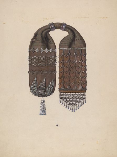 Stella Mosher crafted this Beaded Purse, sometime between 1855 and 1995 and with beads of course. The process of making something like this feels like a conversation, each bead a word, each row a sentence, building up to something both useful and beautiful. Up close, you can almost feel the texture, right? Imagine the slightly rough feel of each tiny bead, cool to the touch, catching the light. The colors are muted, soft pinks and grays, with that stripe of darker brown bisecting the object, anchoring it, creating a satisfying tension. Look at the way the beads are arranged to create patterns, tiny crosses and geometric shapes. Each tassel hangs just so, a playful touch. It’s not just a bag; it’s a sculptural object. You know, looking at the surface of this purse I am reminded of the work of contemporary artist Liza Lou who also works with beads on a grand scale. But the domestic scale of this object is part of what gives it such appeal. It’s like a little secret, a treasure, a way to carry a bit of beauty with you.