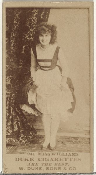 This small card from the late 19th century was made by W. Duke, Sons & Co. as part of an advertising campaign for Duke Cigarettes. It features a photograph of Maud Clifton, an actress, posed in a domestic setting. The image creates meaning through visual codes and cultural references. The actress herself was a commodity being sold to the public, much like the cigarettes being advertised. The card reflects the growing commercialization of leisure and entertainment in America at the time. This was a period in which the advertising industry and the mass media were beginning to shape cultural tastes and social norms. Cards like these are invaluable to social historians. They tell us a great deal about gender roles, consumer culture, and the cult of celebrity in late 19th-century America. We can find out more about the status of theatre by researching playbills and theatre reviews from the period. We can also track the rise of the tobacco industry by looking at trade publications and company records.