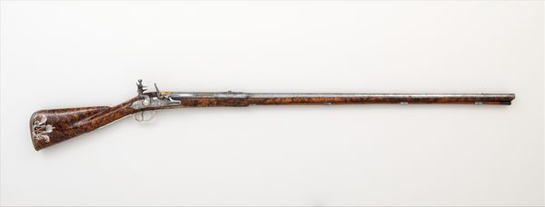 Curator: What an exquisite example of Baroque craftsmanship! We are looking at a pair of double-barreled flintlock pistols created by François-Alexander Chasteau between 1752 and 1753. Notice the ornate silver and gold detailing contrasting against the dark wood. Editor: My immediate reaction is… uneasy. These aren’t merely functional objects; they’re statements of power, aren’t they? Symbols of a deeply unequal era. Curator: Undeniably. The pistol as a symbol carries weight. In this instance, we see it elevated through meticulous carving and precious metalwork, reflecting its owner’s status, a claim to authority and perhaps even projecting a veneer of divine right, don't you think? Editor: Right. That veneer is precisely what bothers me. This weapon represents more than just an individual’s defense. The period saw expansion and oppression, all fueled by tools just like these. Can we truly separate the beauty of the object from its historical context, especially when considering issues like colonialism? Curator: It's a critical consideration, isn't it? Yet the imagery—the flowing, almost organic quality of the carving—speaks to the artistic language of the period, the Baroque style flourishing during an era when luxury served a specific political purpose. Think of the iconography it implies! Power, conquest… but expressed through symbols. Editor: And who were the gatekeepers of those symbols? How did this refined violence affect everyday life, not only abroad, but in places such as France during those unstable times of economic disparities and growing resentment that helped to trigger the later revolution? How are firearms and their inherent power structures perceived today? Curator: Indeed. Those kinds of tensions make viewing an object like this complicated, fraught even. One has to be very mindful of not just aesthetic appreciation, but also grappling with the moral implications involved. Editor: So much visual excess in service of projecting absolute authority. We can appreciate the artistry, sure, but never without remembering the legacy of such tools and their presence as lasting signs of social control, am I wrong? Curator: No, you aren’t wrong at all. I think what remains potent about these pistols is how they prompt us to ask precisely those difficult questions. How aesthetics served politics, power, and exploitation... that is quite something to witness. Editor: Precisely, a stark, if unsettling, testament to our shared, complex history.