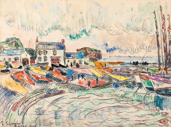 Paul Signac made this watercolor and pencil work depicting Barfleur's port sometime around the turn of the century. The scene captures a blend of maritime activity and the enduring presence of the church. It reflects the cultural context of France at the time, with its blend of tradition and modernity. Signac, associated with the post-impressionist movement, was interested in capturing fleeting moments and the effects of light. The wispy style contrasts with the firm edifice of the Church on the left, a sign perhaps of changing cultural values in the French third Republic. As historians, we delve into archives and cultural studies to understand how artists like Signac engaged with their rapidly changing world. Works like these can be seen as documents of social life, capturing the visual essence of a moment in time.
