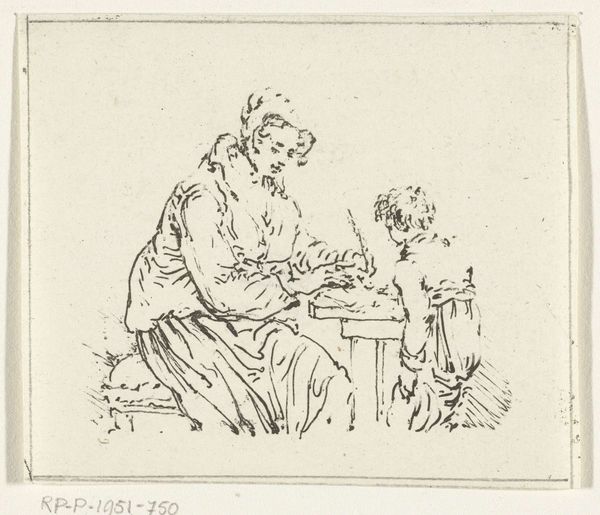 Louis Marin Bonnet created this sanguine drawing of two women doing laundry. The act of washing here is not merely a chore, but a symbol deeply rooted in cultural memory. Water, the key element in this scene, has ancient associations with purification, renewal, and the cyclical nature of life. The flowing water, in contrast to the static stone architecture, symbolizes the eternal rhythm of life. Consider, for instance, the countless baptismal fonts across Europe, each one mirroring this act of cleansing. Similarly, the ancient Roman public baths weren’t merely places for hygiene, but crucibles for social and cultural renewal. These basins became arenas for citizens to purify themselves from the dirt of daily affairs. Even today, the gesture of washing carries profound psychological weight. It’s a ritual act of shedding the old and embracing the new, resonating with our subconscious desire for cleanliness and renewal. Thus, Bonnet's seemingly simple drawing captures a timeless human drama, echoing through centuries.