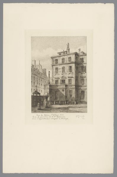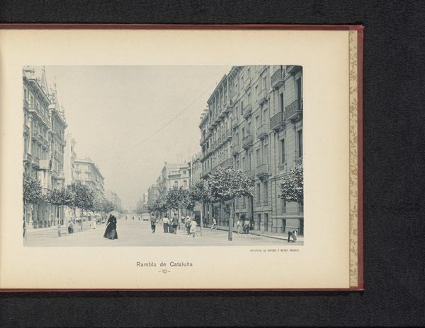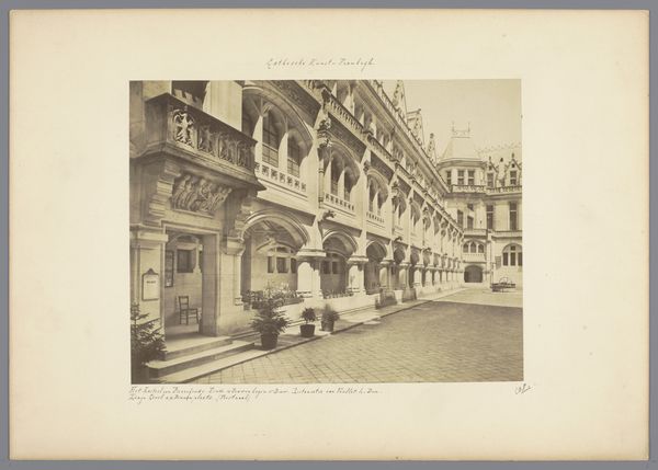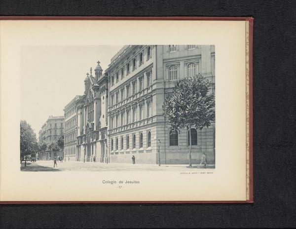 Editor: Here we have P. Savigny's "Gezicht op een gebouw van vermoedelijk het bisdom van Fribourg," a photograph from 1897, likely silver gelatin. It's a beautiful, almost dreamlike cityscape. I'm struck by the light, the way it softens the edges of the buildings... it's not quite sharp, but atmospheric. What catches your eye most in this piece? Curator: You've put your finger right on it. This hazy quality, that dreamlike effect, stems from pictorialism, a movement trying to make photography more like painting. They manipulated the process to create images brimming with feeling and impression. Savigny gives us more than a snapshot; he invites us to wander into a memory, a fleeting moment. I sense melancholy, even nostalgia. The blurred details suggest things fading away. Do you get that, too, or am I just projecting my own autumnal mood? Editor: No, I get it! There is a wistful feeling, maybe it’s knowing this is a glimpse into a past world. The focus on light definitely makes it feel less clinical than a typical photograph. I wonder about the buildings. Did the artist pick this spot for any symbolic meaning? Curator: It's tempting to search for symbols, and perhaps that "vermoedelijk het bisdom" *is* significant! But sometimes, beauty is simply found, stumbled upon. Savigny may have been charmed by the light on the facade, the way the trees softened the rigid architecture. He composed a moment, didn’t just record it. I wonder, does knowing about Pictorialism change how you perceive it now? Editor: Definitely! I appreciate the artistic intent even more now. It is more than just a building. I can see it like painting with light and shadow, really evocative. Curator: Exactly! It is capturing something beyond the literal. What a neat reminder to see photography not just as documentary, but as artistry!