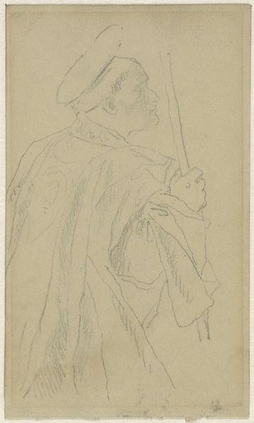 Editor: This is “Woman Weeping,” a pencil drawing by Jean-Louis Forain. It’s incredibly evocative, such a simple sketch, yet filled with melancholy. What draws your eye when you look at this? Curator: The gesture itself speaks volumes. Notice how her face is obscured, hidden, as though she is withdrawing from the world. Tears, historically and culturally, cleanse, purify, even express devotion, but here, there's a profound sense of private grief. What kind of cultural associations do you connect with weeping women in art? Editor: I think immediately of religious paintings of Mary, often depicted crying. But this feels much more intimate, more personal than those iconic figures. Curator: Precisely. And the sketch-like quality amplifies that intimacy. Forain captures a raw, unfiltered emotion. Her clothing, vaguely suggested, could indicate mourning, but I think the symbol resonates deeper than social convention. We see a universal human experience in her posture. Have you noticed how the rapid pencil strokes around her hand almost vibrate with emotion? Editor: Yes! And how the heavy cloak seems to weigh her down. It's like a physical manifestation of her sadness. I hadn't really noticed that before. Curator: The heaviness of the cloak coupled with face hidden can symbolize a sense of shame or wanting to escape the scrutiny of others during vulnerability. Are there other ways she attempts to control the situation? Editor: Interesting thought. This makes me see a hidden layer of depth beyond simple sadness. I was struck by her overwhelming emotion but now there seem to be nuances of self-preservation too. Curator: Indeed. Symbols layered upon symbols – they echo and resonate through art history. I’m glad we could discover new ideas within a single sketch!