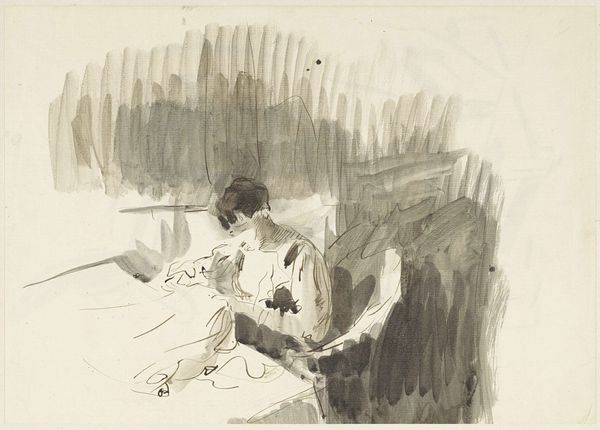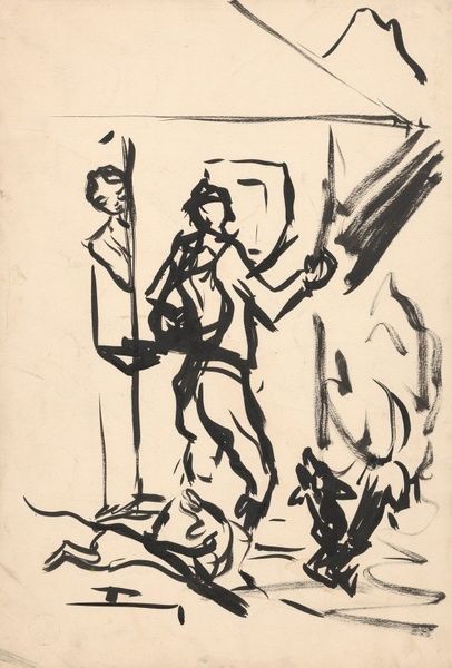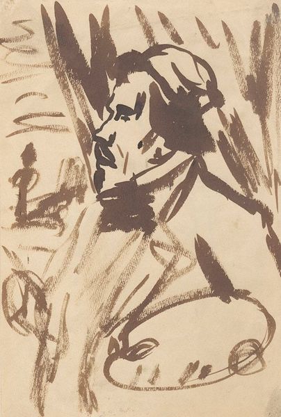 Ernst Ludwig Kirchner captured this figure in front of a mirror with crayon on paper. The drawing presents a figure enveloped by a dense environment, delineated through forceful, angular strokes. The composition is dominated by contrasts—the dark, almost aggressive marks that define the space around the figure and the softer, grey tones that model the woman's form. This use of line and shadow constructs a visual tension, evoking a sense of unease. Kirchner, like many Expressionists, used formal distortions to express psychological states. Here, the drawing’s raw, unfinished quality unsettles the conventional idea of the mirror as a site of self-affirmation, suggesting alienation. The occasional use of colour, such as the muted red streak and the solid green block, serve not to describe but to disrupt the monochrome palette. They act as visual jolts, heightening the drawing’s emotional intensity. This strategy underscores Kirchner’s broader project of challenging fixed meanings, inviting us to reconsider the unstable relationship between appearance and reality.