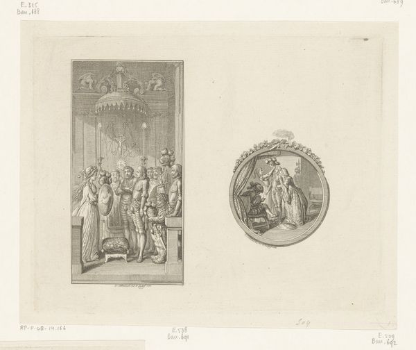 This print, housed at the Minneapolis Institute of Art, presents a scene rendered with fine lines. The composition invites our gaze to linger upon the formal arrangement of figures beneath a tree before a building. The scene unfolds within a rectangular frame, stabilizing the composition. The artist's structured arrangement of line, mass, and space creates a balanced yet dynamic image. The group of standing figures, contrasted by the lone seated figure, sets up a play between activity and stillness. This juxtaposition may challenge conventional ideas about movement and posture, hinting at deeper social meanings through the formal language of the artwork. The choice of a light palette enhances the sense of space and depth. The visual elements may also be interpreted as challenging traditional hierarchies. The arrangement disrupts any singular interpretation, suggesting the fluid nature of meaning and the importance of context. This artwork invites us to see how formal elements can reflect and challenge the cultural codes of representation.