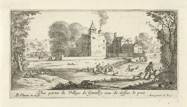 Editor: Here we have Simon Fokke's "Troepen Karel van Gelre buiten Amsterdam, 1507," an etching and engraving from around 1782-1784. The scene is quite chaotic, with lots of figures and architectural details, but there's a real sense of drama. How do you read this work? Curator: What immediately strikes me is the date. While it depicts events of 1507, the print itself was created much later, in the late 18th century. What does it mean to revisit and represent this historical moment during a period of significant political and social upheaval? How does this historical portrayal relate to notions of Dutch identity and perhaps even resistance during Fokke's own time? Editor: So, you’re suggesting the artist might be making a commentary on the politics of *his* time, through a historical lens? Curator: Precisely. The "attack" itself is part of a power struggle. Amsterdam, and by extension, the etching, are also about questions of dominance and control. What details in the composition strike you as particularly telling about this dynamic? For example, who seems to hold the power in the depiction? Who are the victims and who are the aggressors? Editor: I see soldiers carrying supplies toward a walled city, maybe suggesting siege tactics. The figures are really small, but you’re right—they show signs of resistance, weapons and flags raised. Is it possible Fokke's making a point about historical power struggles, but also the role of common people to endure the domination in question? Curator: Exactly. And what happens when that 'common people' find themselves reflected as one or another actor inside those very oppressions and power imbalances? In fact, revisiting history as a way of understanding current socio-political conditions is an ongoing, if sometimes problematic, artistic strategy. I'm left thinking, can historical art pieces function as mirror for present times? Editor: That gives me a lot to think about – both the historical context and how it might resonate today. Thanks for sharing a different way of considering history.