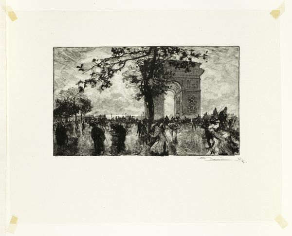 Joseph Pennell created this print of an oil refinery in Whiting, Indiana, using the technique of lithography. Lithography involves drawing on a flat stone or metal plate with a greasy crayon, then treating the surface so that ink adheres only to the drawn areas. This process, traditionally a commercial printing method, allowed Pennell to capture the industrial landscape with stark contrasts and atmospheric effects. The heavy blacks and smoky grays evoke the gritty reality of oil refining, a process central to early 20th-century industry. The stark industrial forms create an atmosphere laden with the implications of energy production. Pennell’s choice of lithography, a technique often associated with mass production, underscores the connection between art and industry. By using a printmaking medium to portray a scene of industrial labor and output, he blurs the boundaries between fine art and the processes that shape everyday life. Approaching this work through the lens of its materiality and making, allows us to consider the social and economic context of its creation.