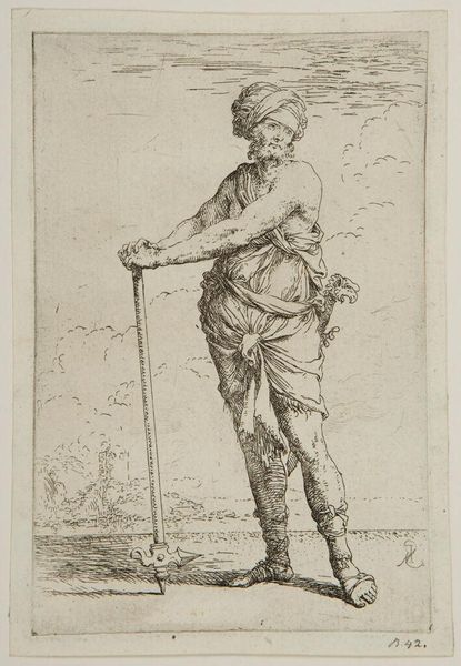 This etching of a soldier was made by Salvator Rosa in the 17th century. As an etching, the image is created by drawing into a waxy ground with a sharp needle, then exposing the plate to acid, which bites away the lines. This is a printmaking process capable of capturing fine detail, as you can see in the soldier's musculature and the folds of his clothing. Consider the labor involved: not just Rosa's artistic skill, but the unseen work of preparing the copper plate, mixing the acid, and running the press. Etchings like this were often made in multiples, so it's important to think of it as a reproducible commodity, connecting artistic vision with the realities of production and consumption in Rosa's time. Paying attention to these material and social dimensions helps us move beyond traditional art history. It shows the amount of work that was involved in the process of creating art. It challenges the distinctions between high art and craft by emphasizing the importance of production in understanding the full meaning of an artwork.