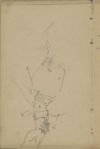 Curator: This sketch, titled "Soldaat te paard," or "Soldier on Horseback," was created by George Hendrik Breitner between 1887 and 1891. Breitner was a key figure in the Dutch Impressionist movement. You can see it currently at the Rijksmuseum. It's executed in graphite and pencil on paper. Editor: Oh, my first thought? It's like a whisper of a moment. Barely there, but the energy! I feel the horse's restless shift and the soldier's... I don't know, maybe a world-weariness etched into just a few lines. Curator: Yes, exactly! Breitner was known for capturing fleeting moments of urban life, and while this is not strictly urban, you can see that impressionistic desire to grasp the immediate. It's likely from one of his sketchbooks, a quick study rather than a finished work. Editor: Which, to me, makes it even more intimate. You're seeing the artist thinking, feeling, *right* there on the page. Look at the economy of line, how he suggests form with so little. Curator: Precisely. Breitner's style evolved during this period. He moved towards a more raw, immediate representation of reality, influenced by his interest in photography. This sketch demonstrates how he distilled complex scenes to their essence. Consider also, how military themes were circulating at the time, fitting with a resurgent nationalism in Europe, so Breitner is certainly working within that historical framework. Editor: Mmm, and while I see that context, I'm also just struck by the vulnerability of it. Soldiers, horses… they are usually monumentalized in art. But here, there’s nothing grand. It’s a sketch from life, ordinary even in its subject matter. Like catching a glimpse of a private, pensive moment of both man and beast. And maybe, because it's just lines on paper, it reflects also our understanding of their place in history, equally fleeting and undefined. Curator: It is a beautiful paradox: capturing the monumentality and ordinariness, side-by-side. Editor: Exactly! It leaves so much space for our own interpretation, for feeling the moment rather than just knowing the story. Curator: I agree. Studying works like this reveals much about Breitner's process and also how art reflects larger socio-political currents. Editor: It's a tiny little window. Peeking in at a particular soldier, horse, and artist all at once. Beautiful.