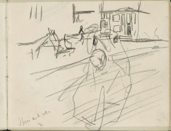 Pyotr Konchalovsky created this still life on paper using graphite. In this drawing, the material's properties of darkness, lightness, and texture take center stage, as the artist is working within a tradition that values capturing three-dimensional form on a two-dimensional surface. It seems that the artist’s hand moved quickly, making marks that suggest, rather than meticulously define, edges. The quickness of mark-making demonstrates the artist’s confidence and mastery in drawing techniques. But it also suggests a mindset in which art is more about the process and the experience, than the finished product. The table and objects rendered with sparse lines show Konchalovsky's engagement with the modernist idea of abstraction. He is not so concerned with capturing the exact likeness of objects, but more interested in evoking their essence and the interplay of light and shadow. This approach challenges the conventional boundaries between observation and interpretation.