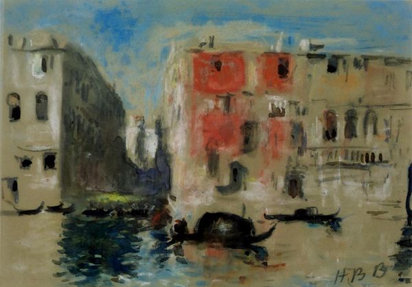 Curator: Immediately, I’m struck by how melancholic this painting is—a gray day hanging over those Venetian facades. There’s something so lovely, yet forlorn about it. Editor: That sense of introspection definitely comes through. What we’re looking at is Pyotr Konchalovsky’s 1924 oil painting, "Venice. House of Tintoretto." Curator: Tintoretto, huh? No wonder it feels dramatic! But I find myself drawn to the everyday details—the laundry hanging from a window, the slight shimmer in the water. There’s such a lovely blend of grandiosity and the mundane. Editor: Absolutely, and it’s worth remembering that Venice, despite its reputation, has always been a working city, and this painting captures that reality. Konchalovsky was part of the Russian avant-garde, a moment rife with manifestos of collective activity. So it may be that the presence of the wash evokes this concept. Curator: Maybe that wash is shouting "art for the people!" but to me it’s the soul of the place…it reminds me how many hands touched those buildings over the centuries. It’s interesting how an image can whisper about collective history, all those lives tucked into a city of art. Editor: It really speaks to the layered identities present here. While the architecture suggests enduring wealth and artistic achievement, the laundry points towards lived realities, echoing current theories of cultural identity and intersectionality within such spaces. There's the grandeur of Tintoretto juxtaposed with these intimate, quotidian realities. Curator: It's the beauty of finding the universal in the specific, isn't it? I’m reminded of that line from Chekhov, “Don’t tell me the moon is shining; show me the glint of light on broken glass.” It's not about the grand statement, but the quiet observation. Editor: Konchalovsky’s art encourages me to reflect on what is preserved and what is elided, it is such an act of contextualization. It provokes thought on our place in time. Curator: Agreed, in that sense I see an homage and conversation between lived reality and art. Editor: I am taking away an exercise in uncovering the concealed stories of place.