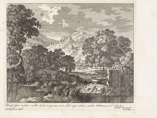 This landscape with a town on a mountain along a river was made by Pieter Schenk around 1700 using etching. Here, we see how the controlled, repeatable action of carving lines into a metal plate allows for a specific kind of vision. Notice how the etched line can capture the textures of the natural world, from the feathery trees to the rippling water. But the process itself is not natural. It's about deliberate, controlled labor. The lines, so fine and precise, speak of hours spent hunched over the plate, the etcher's hand moving with practiced skill. Think of the social context: this print could be reproduced and distributed widely. By valuing the labor embedded in the artwork, and understanding its role in a wider system of production and consumption, we gain a richer appreciation for the artistry and its significance.