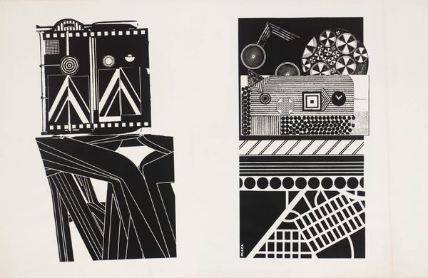 Editor: This is Sir Eduardo Paolozzi's "Artificial Sun" from the Tate. It’s quite a striking image, almost overwhelming with its geometric shapes and patterns. What can you tell me about it? Curator: Well, the title itself, "Artificial Sun," is telling. Paolozzi was deeply engaged with post-war consumer culture and technology. This print, with its collage-like effect, reflects a world saturated with imagery and mass production. Editor: So, the chaotic arrangement isn't accidental? Curator: Precisely. Consider how the seemingly random juxtaposition mirrors the bombardment of information in modern life. The imagery is taken from a variety of sources, from advertising to technical diagrams. What do you think he's saying about progress? Editor: It feels like he's questioning whether all this progress is actually beneficial. It's stimulating, but also a bit unsettling. Curator: Exactly! It shows us how artists responded to the shifting cultural landscape. Editor: I see now. It’s more than just a collection of shapes; it's a commentary on society. Curator: Indeed, and it offers a critical perspective on the role of art in shaping our understanding of the world.
