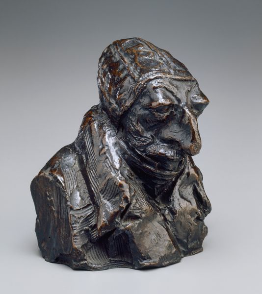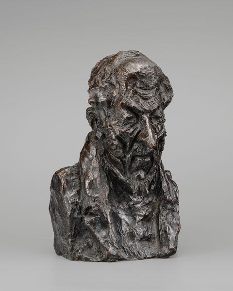 Honoré Daumier sculpted this bronze portrait of Jean-Auguste Chevandier de Valdrome with remarkable texture and form. The rough, almost furrowed surfaces capture a sense of gravity and introspection. Daumier’s focus on the materiality of the bronze—its capacity to reflect light and shadow—enhances the sculpture's expressive power. The interplay of light and dark across the uneven surface emphasizes the subject's features, particularly the downward gaze and contemplative expression. This sculptural technique resonates with contemporary philosophical interests in realism and the representation of individual character. The work challenges classical ideals of beauty, instead, offering a study in the aesthetics of imperfection. It compels us to consider how the very structure of an artwork, its form and texture, can communicate profound aspects of the human condition, moving beyond mere representation to evoke deeper emotional and intellectual responses. The sculpture remains a testament to Daumier's innovative approach and his ability to imbue the material with meaning.