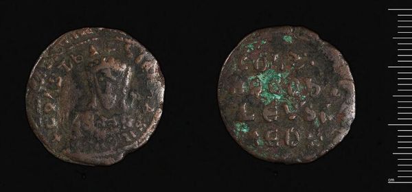 Editor: So, here we have a bronze coin, quite small, featuring Arcadius from Heraclea. It’s heavily patinated, giving it an aged, almost ghostly feel. What story do you think this little artifact whispers? Curator: Ah, a whisper from the past, indeed! To me, it speaks of power, naturally, but also of its fragility. Look at the wear, the imperfections. Power, like this coin, is subject to the relentless march of time. What does that patina suggest to you, beyond age? Editor: A sort of blurring of the original intention, perhaps? The details fade, the message becomes more ambiguous. I guess, it is kind of beautiful, in its own way. Curator: Exactly! Isn't it evocative how something designed for clarity—currency, imperial image—becomes, over centuries, a question mark? A tangible reminder that everything, even empires, fades into a beautiful enigma. Editor: I never thought of it that way. I'll definitely be looking at old coins with new eyes from now on!