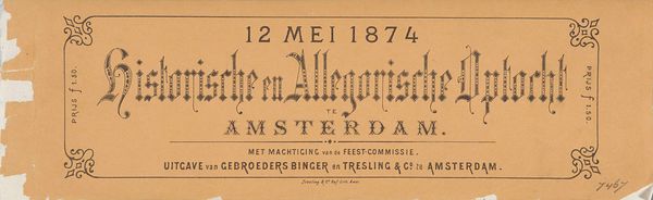 This is the cover for the program of King Willem III’s jubilee parade in Amsterdam, made in 1874 by Tresling & Comp. The rampant lions flanking the Dutch coat of arms immediately catch the eye. These lions, symbols of strength and sovereignty, echo motifs found as far back as ancient Mesopotamia. Lions appear on royal standards, emblems of power, and heraldic crests across millennia. Here, they support the modern Dutch monarchy, but their roar resonates with ancestral claims to authority. Consider the psychological weight of these emblems. Nations and rulers throughout time have tapped into this primeval association, using the lion to project might, instilling a sense of security and pride. It’s a visual language embedded deep within the collective consciousness, revived and adapted for King Willem's celebration. Though the program commemorates a specific event, the lions remind us of how symbols are far from static. They constantly resurface, evolving, and acquiring new layers of meaning in each historical context.